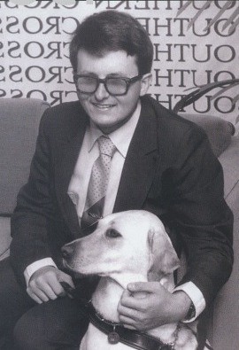 Born in Bermagui, New South Wales, Michael Waldock lost his sight as an adolescent. When he was twelve years old he was taught mobility through the use of a cane, but his vision deteriorated further and he became a recluse. The Guide Dogs Association usually only worked with adults, but made a special exception for fourteen-year-old Michael, whose guide dog Robbie helped transform his life. Waldock was given a CB radio for his sixteenth birthday and began working for the Australian Volunteer Coast Guard. He tirelessly monitored radio signals for 15 hours each day and contributed to 160 sea rescues within 30 months. Waldock alerted authorities to distress calls from yachts and cargo ships and during one three day period 17 lives were saved.