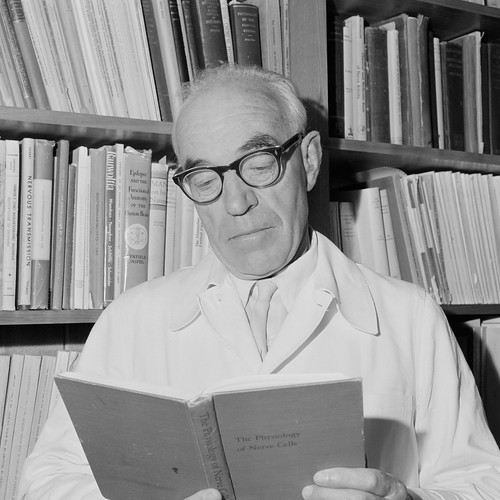 Sir John Eccles was a leading Australian neurophysiologist and the Foundation Professor of Physiology at the John Curtin School of Medical Research at the Australian National University. Born and educated in Melbourne, Eccles won a Rhodes Scholarship in 1925 and worked with the pioneering neurologist Sir Charles Sherrington at Oxford University. He subsequently worked in Sydney and New Zealand before moving to Canberra in 1951.